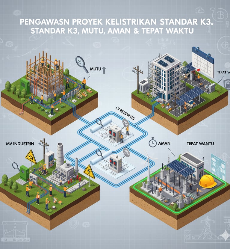 Project Supervision (SUPER VISI NIDI & SLO) Pengawasan proyek kelistrikan dengan standar K3, memastikan mutu, keamanan, dan ketepatan waktu pengerjaan.